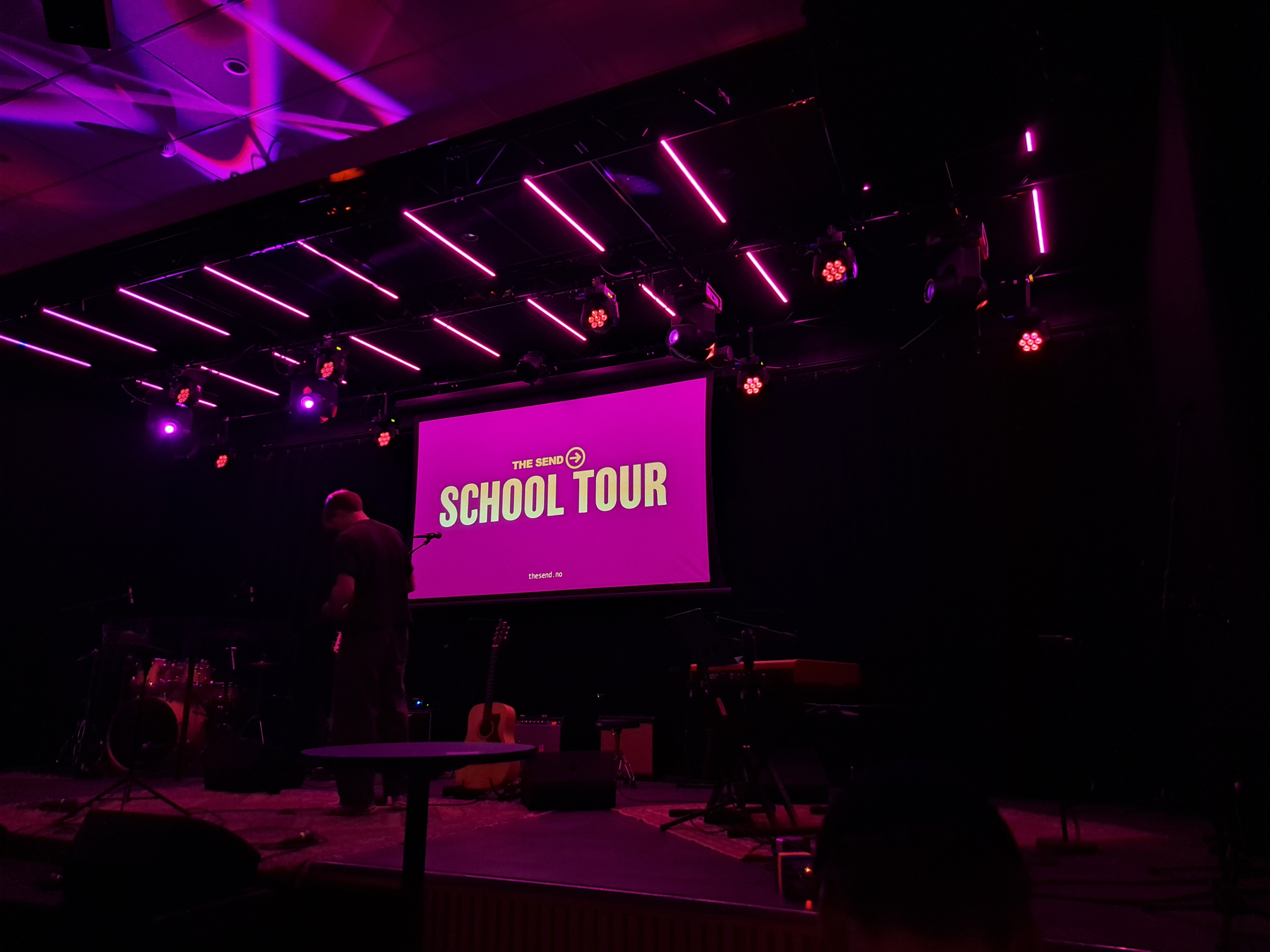 Etter fire dager på lovsangskole så teamet vi opp med the send school tour. Det er et initiativ fra the send hvor de reiste til 6 ulike skoler, og vi fikk bli med på to av de. Møtene besto av lovsang, vitnesbyrd og deling om misjon og å gå «all in». Det var virkelig fantastisk å se alt Gud gjorde på disse møtene. På den ene skolen ble nesten alle radene tømt, fordi de gikk til forbønn.